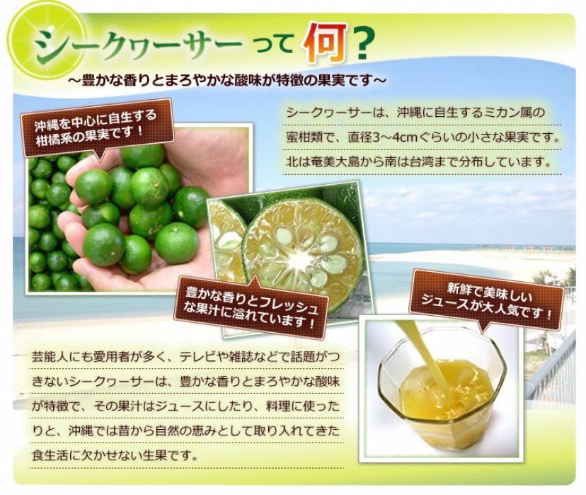 - 此產品為100%原個沖繩香檸榨汁,味道較酸,建議應用水溝稀1:5~8水/梳打水, 可加蜜糖飲用 。